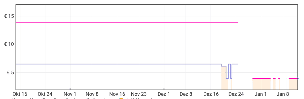 Der Verlauf zeigt uns, dass bisher noch rund 7€ für das Set in Rechnung gestellt wurden, sodass ihr hier auf eine Ersparnis von knapp 3€ kommt. 116 Kundenstimmen vergeben im Schnitt sehr gute 4,5 von 5 Sterne.