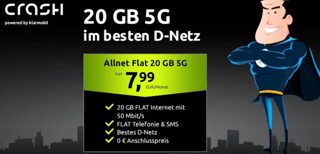 Neues Angebot seitens Vitrado. So bekommt ihr eine Crash Telekom Allnet- und SMS-Flat mit 20GB 5G (50 Mbit/s + VoLTE, WLAN Call) für 7,99€ monatlich.