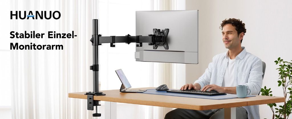 Hervorragende Stabilität: Die HUANUO monitor halterung ist aus robustem Aluminiumdruckguss und kaltgewalztem Stahl gefertigt und kann Gewichte von bis zu 8 kg stabil und wackelfrei tragen.