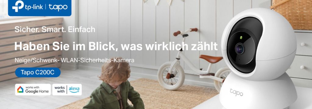 Dürfte Bestpreis sein. Bei Amazon verkauft man euch nun die Tapo C200C 360°-WLAN-Überwachungskamera für den Innenbereich (1080P) für 15,99€ inklusive des Prime Versand.