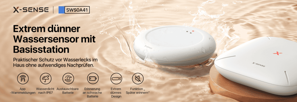 Alarm der Basisstation: Wird Wasser festgestellt, blinkt auf dem Wassermelder eine rote LED. Ein akustischer Alarm wird allerdings nur von der Basisstation ausgegeben. Wenn Sie ein Modell wünschen, bei dem sowohl das Gerät als auch die Basisstation einen Ton abgeben, empfehlen wir das X-Sense SWS54 Kit mit WLAN-Wassermelder